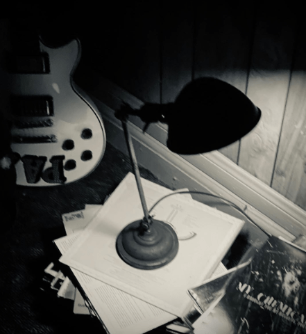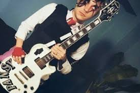 The guitar (Top left) is featured in this video, with the stickers on the bottom reading “PANSY” which is Frank Iero’s (guitarist of MCR) favorite guitar that unfortunately broke
