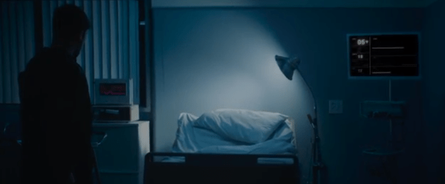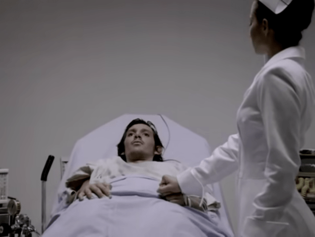 Here is another scene in the video where the boy is wandering around the hospital and finds a creep hospital gurney, referencing to the “Welcome To The Black Parade” video.