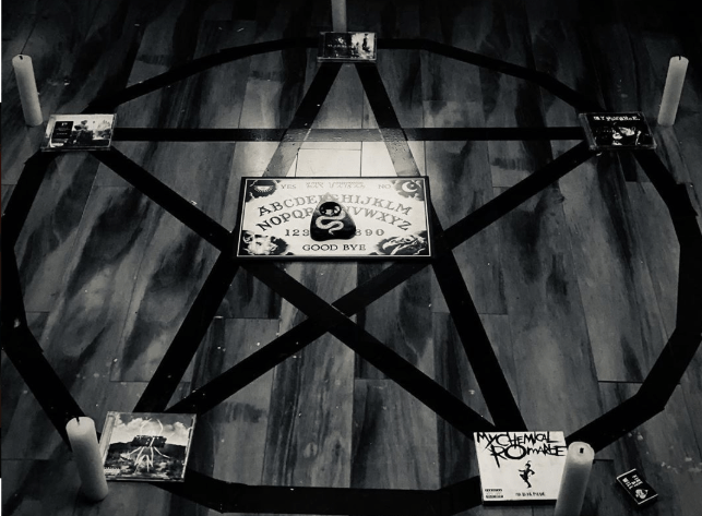 This was in the video where the boy performed a ritual with MCR’s first 5 albums