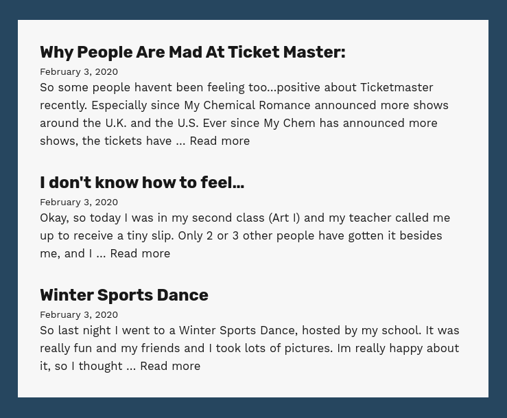Thats all I changed for now…feel free to go check out my about me page and the other new stuff. I personally think its really cool. Have a better day!