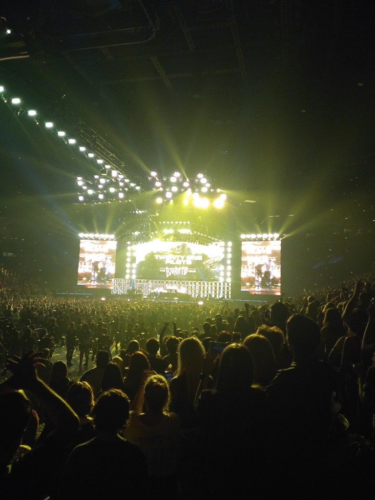 Im a pretty awkward person, as some people here know. I grew up in Missouri and I go to an awesome (well, not all the time) high school with my best friends. Im a total nerd for bands such as My Chemical Romance, Twenty One Pilots, Panic! At The Disco, Melanie Martinez, IDKHow, Waterparks, Palaye Royale, and Frank Iero and the Future Violents (and his many other solo bands…). I have spent most of my middle school years and all of my high school years so far getting to know and understand what these bands stand for, and what they mean to me. I got to go to a Twenty One Pilots concert in 2018 too, and that was probably one of the best nights of my entire life. I will try to find some photos that my mom had taken when we were there: